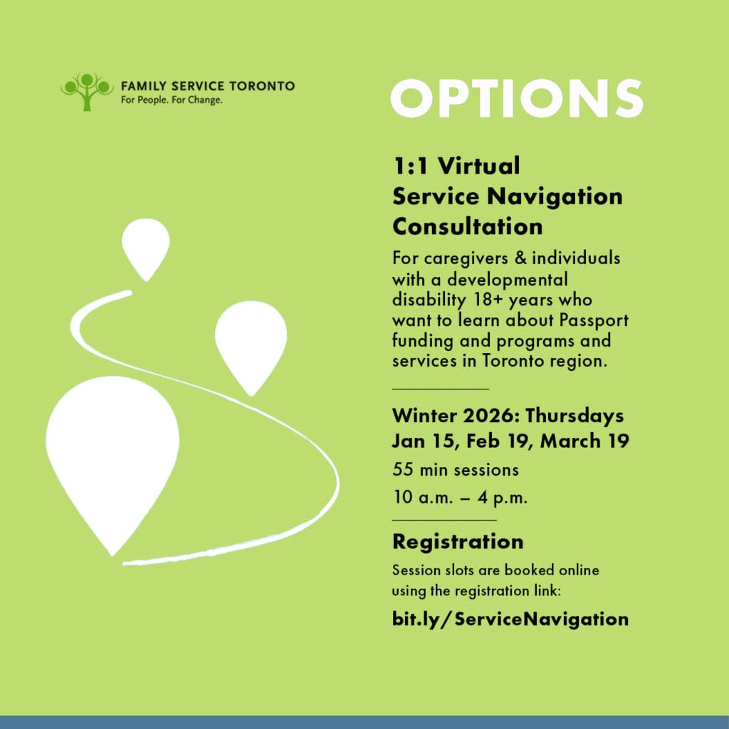 Among the virtual groups open for registration are Virtual Service Navigation Consultation through our Options Adult program for caregivers and individuals with a developmental disability 18+ years and who want to learn about Passport funding and programs and services in Toronto region. The session is offered over three Thursdays this winter starting Jan. 15.